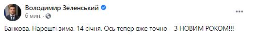 18:46 С зимней погодой поздравил Владимир Зеленский.