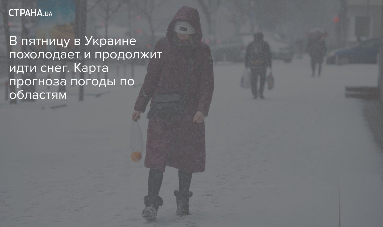 В пятницу в Украине похолодает и продолжит идти снег. Карта прогноза погоды по областям