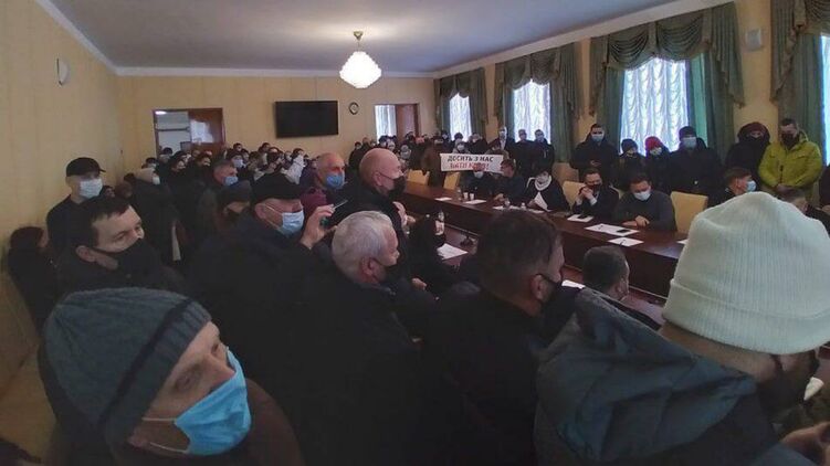 В Житомире митингующие общаются с местными депутатами. Фото: Telegram/ ПРОТЕСТ