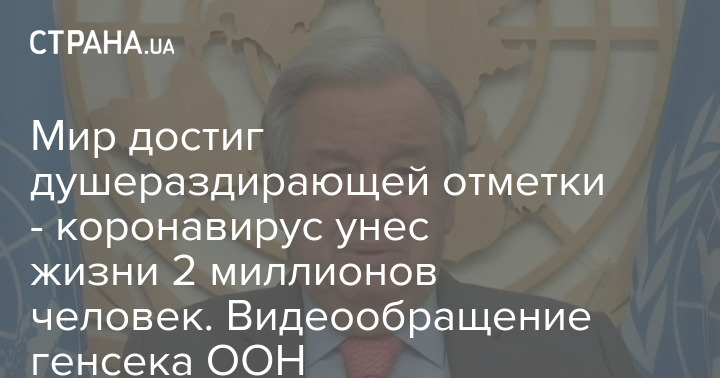Мир достиг душераздирающей отметки - коронавирус унес жизни 2 миллионов человек. Видеообращение генсека ООН