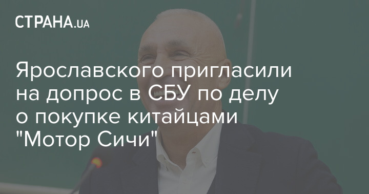 Ярославский, который вместе со Skyrizon – "дочкой" китайской Beijing Xinwei Technology Group – добивается одобрения Антимонопольным комитетом Украины сделки по покупке ПАО "Мотор Сич", пообещал прибыть в СБУ 19 января.