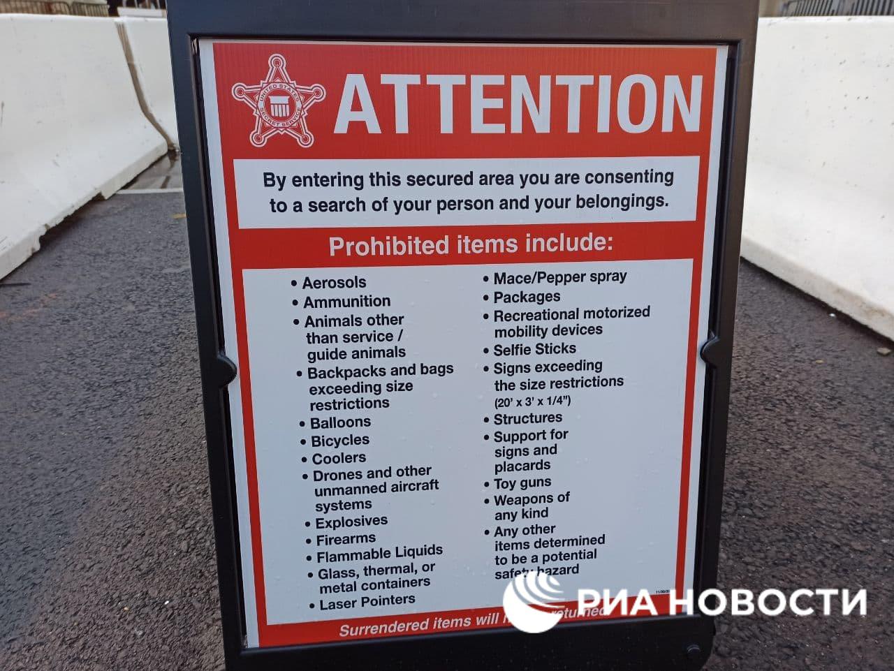 16:30 Под запрет попали аэрозоли, рюкзаки, селфи-палки, дроны, игрушечные пистолеты, лазерные указки, животные (кроме служебных и поводырей). Их нельзя проносить с собой в центр Вашингтона, где должна начаться церемония инаугурации.
