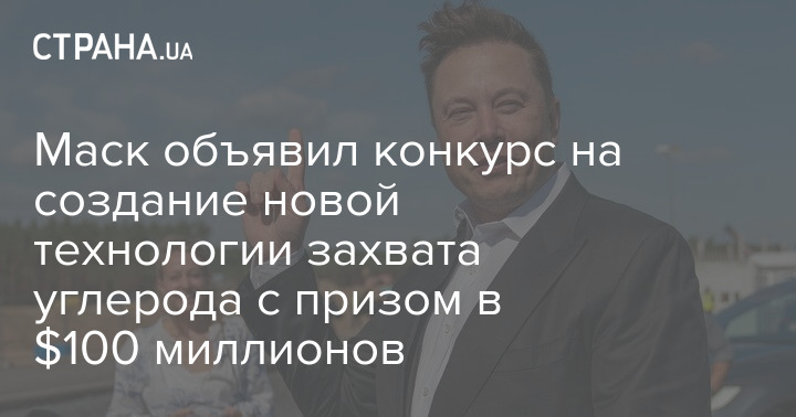 "Выделяю $100 млн на приз за лучшую технологию захвата углерода", - сообщил Маск, пообещав сообщить подробности конкурса на следующей неделе.