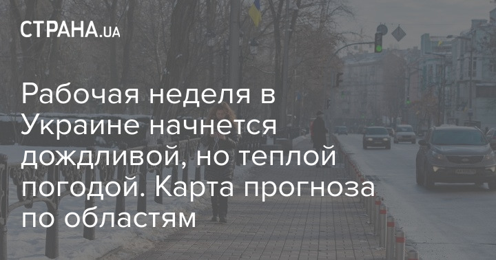 Рабочая неделя в Украине начнется дождливой, но теплой погодой. Карта прогноза по областям