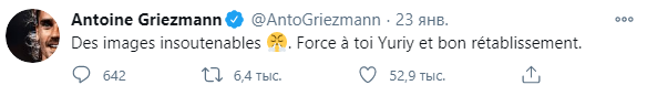"Событие, которое нельзя терпеть. Силы тебе, Юрий, и хорошего восстановления", - написал в Твиттере известный французский игрок.