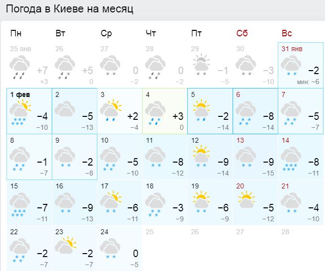 Погода в Киеве на месяц. Прогноз Gismeteo