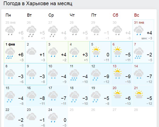 Погода в Харькове на месяц. Прогноз Gismeteo