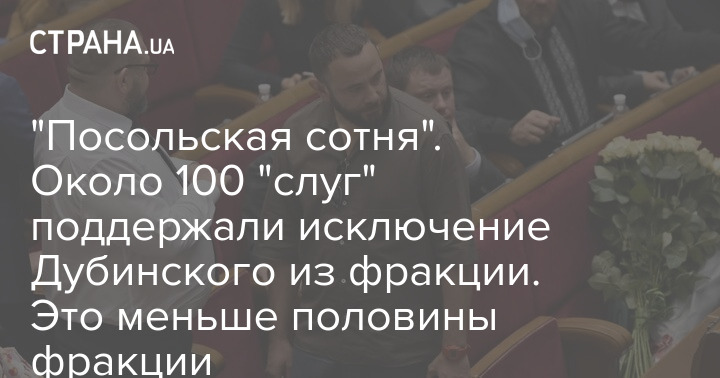 Источник "Страны" во фракции подтвердил, что за исключение Дубинского проголосовало всего 100 депутатов. "Во фракции их уже прозвали "посольская сотня". С учетом слухов о том, что на исключении Дубинского настаивает американское посольство, куда не так давно ходило несколько депутатов обсуждать этот вопрос", - говорит источник.
