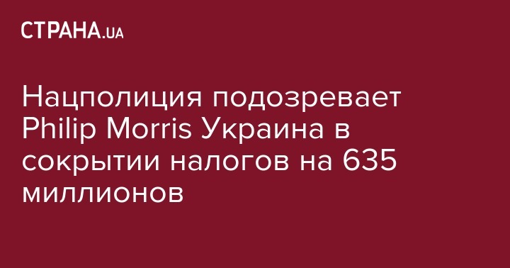 Нацполиция возбудила уголовное дело против украинского филиала международной компании-производителя сигарет "Philip Morris Украина". Причиной разбирательства стали подозрения в нарушении налогового законодательства на сумму в 635 миллионов гривен, сообщает канал "24".