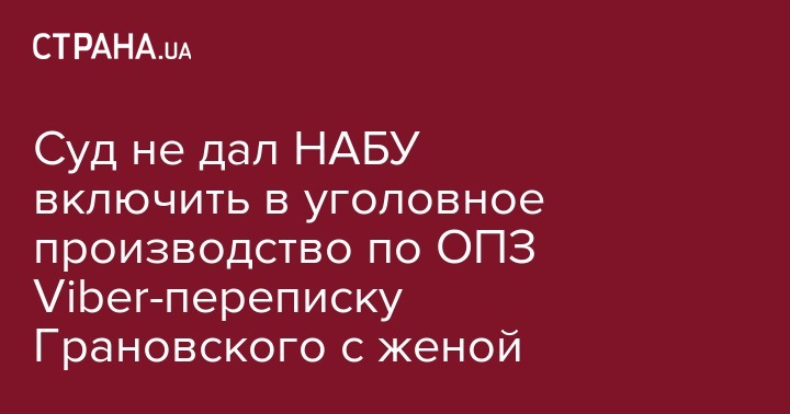 Национальное антикоррупционное бюро обратилось в Соломенский районный суд с ходатайством о разрешении использовать как доказательство в уголовном производстве по факту злоупотреблений на Одесском припортовом заводе Viber-переписку из телефона члена правления ОПЗ Ольги Ткаченко, гражданской жены влиятельного депутата от БПП Александра Грановского. Об этом сообщает "Страна" со ссылкой на решение суда.