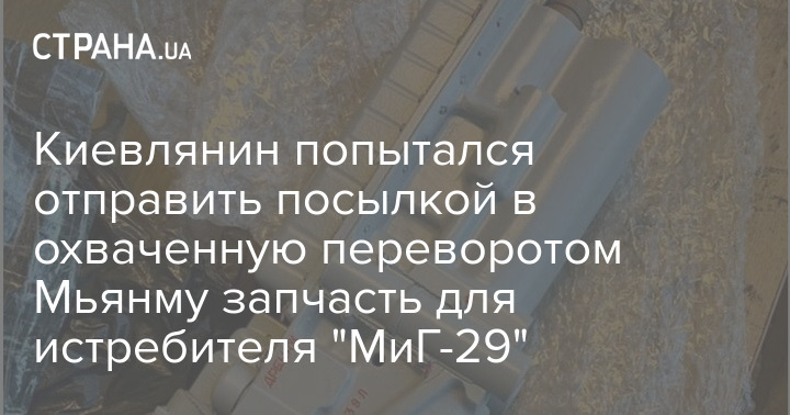 Киевлянин пытался посылкой отправить в Мьянму, где вчера начался военный переворот, запчасть от  многоцелевого истребителя "МиГ-29". Об этом сообщает Киевская таможня.