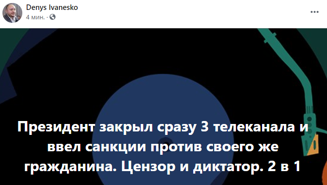 23:18  "Президент закрыл сразу 3 телеканала и ввел санкции против своего же гражданина. Цензор и диктатор. 2 в 1", - отреагировал журналист Денис Иванеско.