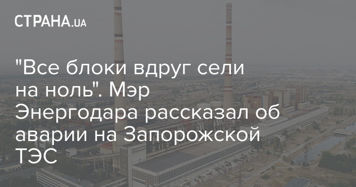 Весь город Энергодар и соседние населенные пункты с 19:27 остались без электроснабжения из-за аварии на ТЭС.