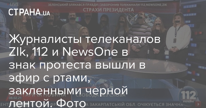 Утром в понедельник, 8 февраля, журналисты трех закрытых оппозиционных каналов ZIk, 112 и NewsOne вышли в эфир с заклеенными ртами в знак протеста против ограничения на свободу слова.