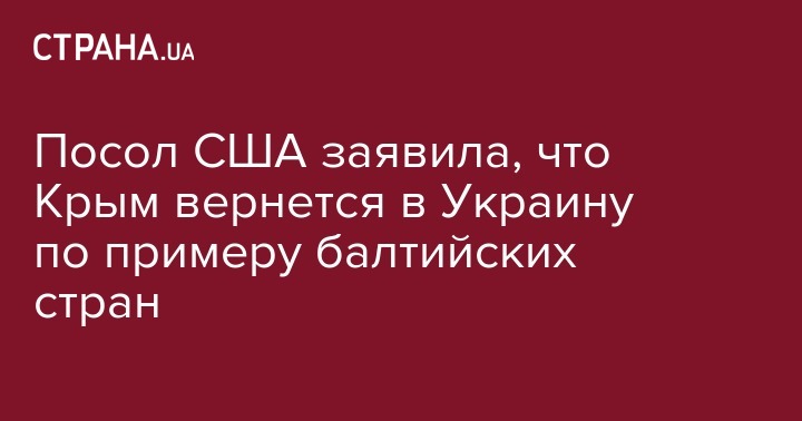 Новоназначенный посол США в Украине Мари Йованович сообщила, что верит в возвращении Крыма в Украину, и предполагает, что эт  может произойти по "балтийскому сценарию". Об этом она рассказала "Украинской правде".