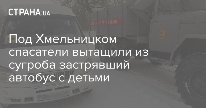 Под Хмельницком спасатели вытащили из сугроба застрявший автобус с детьми
