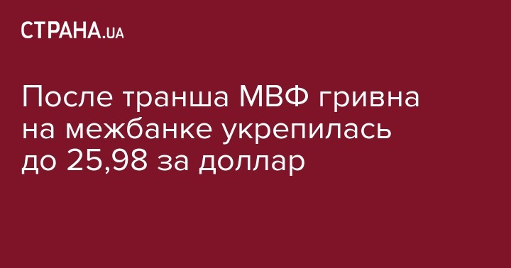 После транша МВФ гривна на межбанке укрепилась до 25,98 за доллар