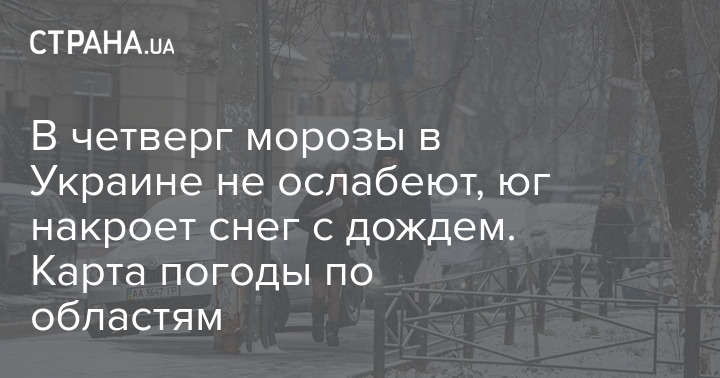 В четверг морозы в Украине не ослабеют, юг накроет снег с дождем. Карта погоды по областям