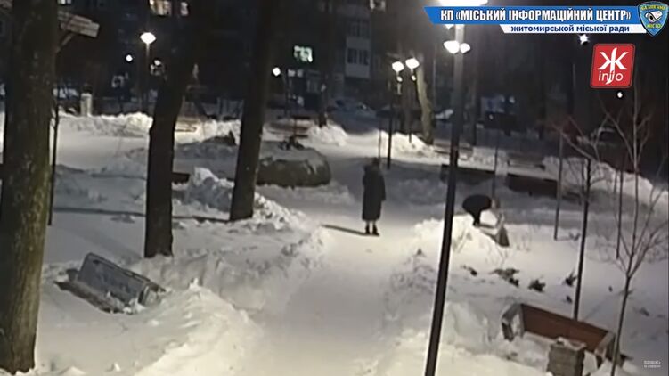 Парочка в Житомире перевернула лавки в парке на День влюбленных. Скриншот