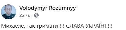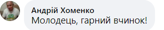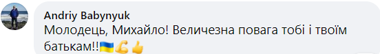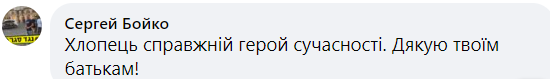 Комментаторы паблика "Информационные войска Украины" принялись нахваливать того, кто фактически сорвал мероприятие, а также его родителей – "за патриотическую позицию и соблюдение украинских законов".