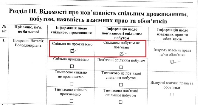 В декларации родственных связей в 2016 году Виктор указал, что с женой Натальей не проживает.