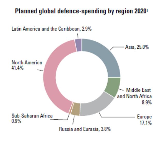 Отмечается, что несмотря на существенный рост расходов на оборону с 2018 года, ожидается, что в этом году этот рост будет замедляться из-за выравнивания оборонных бюджетов в США и Азиатско-Тихоокеанском регионе.