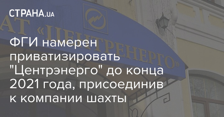 Фонд госимущества Украины (ФГИ) намерен осуществить приватизацию вертикально-интегрированной компании (ВИК), созданной на базе ПАО "Центрэнерго" и ряда государственных шахт, до конца 2021 года.