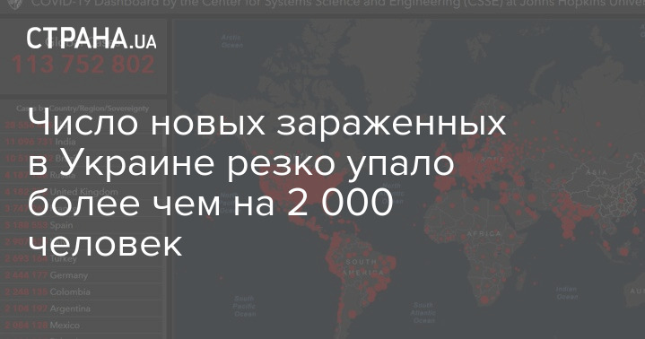 Число новых зараженных в Украине резко упало более чем на 2 000 человек