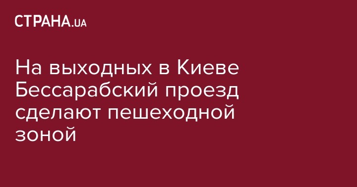 В субботу, 17 сентября, и воскресенье, 18 сентября, в Киеве будет перекрыт Бессарабский проезд, который превратят в общественный парк. Об этом сообщает журнал "Хмарочос".