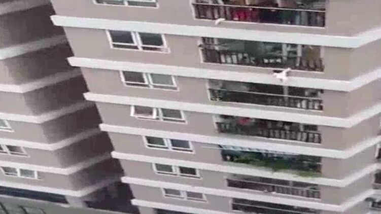 Во Вьетнаме девочка выпала с балкона двенадцатого этажа и выжила, приземлившись на руки курьера. Видео