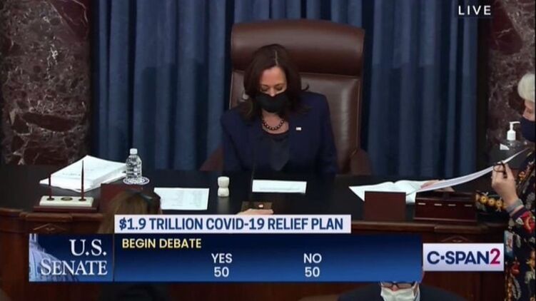 Сенаторы США проголосовали за начало дебатов по антикризисному пакету помощи для граждан Америки в размере $1,9 триллионов благодаря вице-президенту США Камале Харрис.