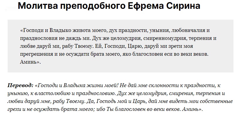 Обычно в среду и пятницу Сырной Седмицы литургии не проводят. Верующие каждый день читают молитвы из Постной Триоди. 10 марта и 12 марта читают молитву преподобного Ефрема Сирина. Она считается важнейшей молитвой Великого поста.