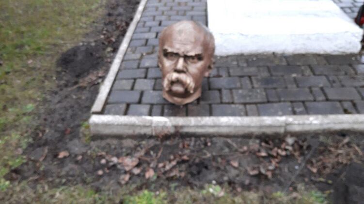 "Под Домом культуры отрезали голову памятнику Тарасу Шевченко! Очевидно, вандалы "приурочили" свои действия ко дню рождения нашего Кобзаря", - написал он.