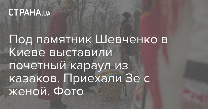 Под памятник Шевченко в Киеве выставили почетный караул из казаков. Приехали Зе с женой. Фото