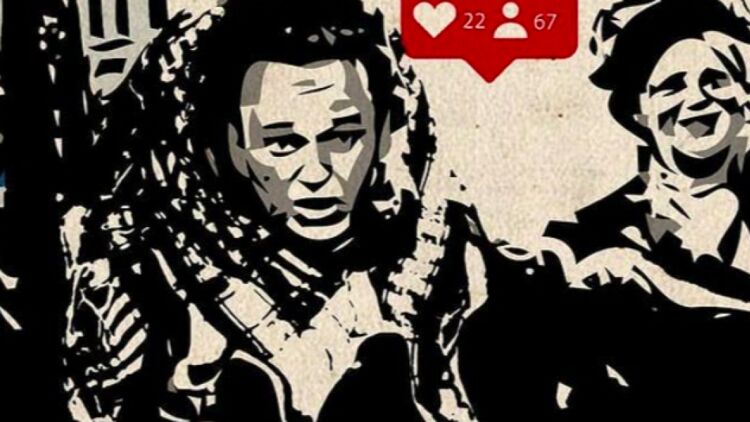 Напомним, шедевр Сурикова изображает сцену из истории церковного раскола в XVII веке. У Бусевич, как и в оригинале, есть повозка с санями, только в них сидит не Морозова, а Навальный. Среди уличной толпы можно разглядеть Ангелу Меркель. При этом над народом висит облако из лайков.