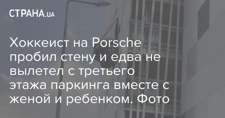 Хоккеист на Porsche пробил стену и едва не вылетел с третьего этажа паркинга вместе с женой и ребенком. Фото