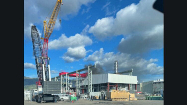 Пламя вспыхнуло в новом строящемся здании. По предварительным данным экстренных служб произошла утечка гидравлической жидкости, которая вступила в контакт с раскаленным металлом.
