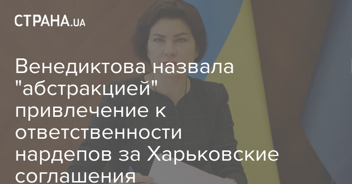 Генеральный прокурор Украины Ирина Венедиктова придерживается мнения, что вопрос о персональной ответственности депутатов, которые 11 лет назад подписали Харьковские соглашения преждевременный, и за волеизъявление народных избранников нельзя привлечь к ответственности.