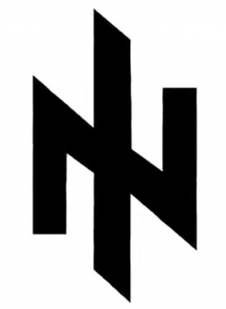 Эмблема группировки - стилизованная под "волчий крюк" буква Ф и надпись псевдоготическим шрифтом.