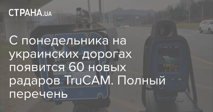 С понедельника на украинских дорогах появится 60 новых радаров TruCAM. Полный перечень