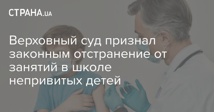 Отстранение от занятий в школе не привитого по возрасту ребенка является законным и обеспечивает безопасность всех учеников. Такое постановление вынес Верховный суд Украины сообщается в реестре судебных решений.