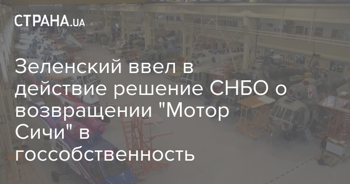 Ранее "Страна" сообщала, что на заседании СНБО приняли решение вернуть завод "Мотор Сич" в государственную собственность "конституционным способом". А 12 марта секретарь СНБО Данилов заявил, что на заседании СНБО говорили не о национализации "Мотор Сичи", а о "возвращении ее народу".
