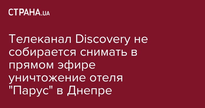 Как сообщала "Страна", заместитель мэра Днепра Михаил Лысенко заявил, что желающих инвестировать в достройку "Паруса" нет. Потому власти рассматривают возможность взорвать долгострой и при этом устроить шоу, показав уничтожение отеля в прямом эфире. При этом Лысенко заявил, что с телеканалом Discovery якобы ведутся соответствующие переговоры.