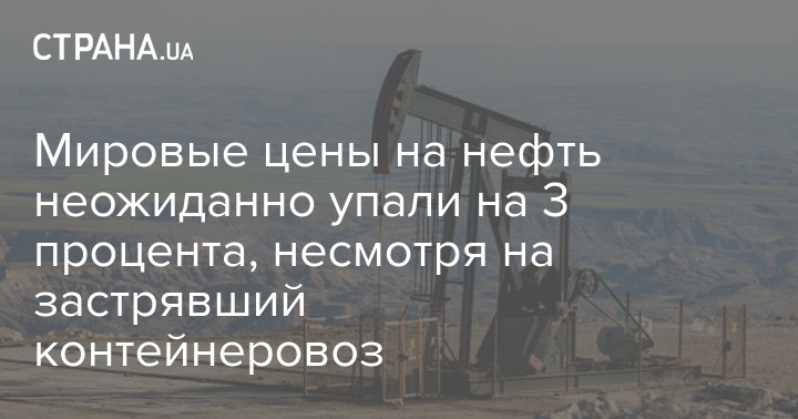 Мировые цены на нефть неожиданно упали на 3 процента, несмотря на застрявший контейнеровоз