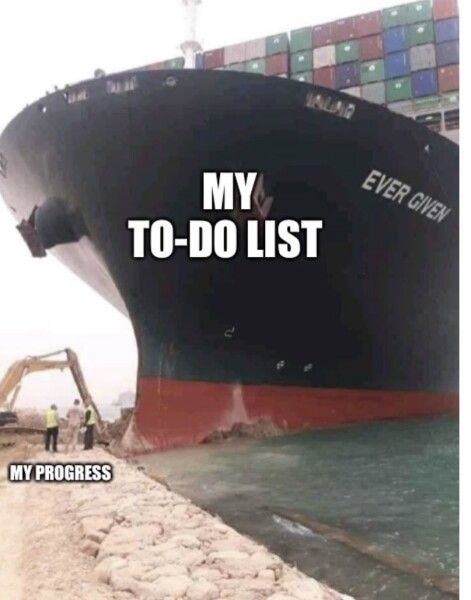 Другие сравнивают свой прогресс (в образе небольшого экскаватора) с огромным списком дел (в форме севшего на мель сухогруза).