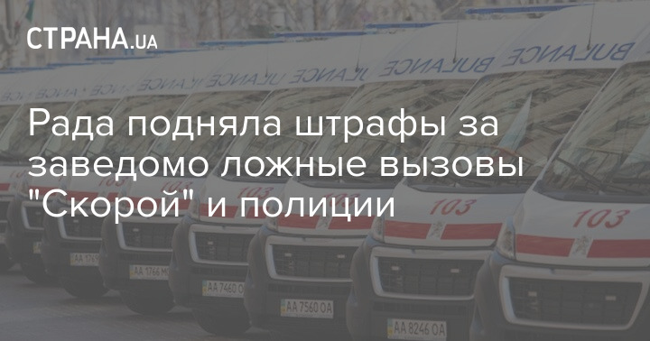 Верховная Рада Украины приняла во втором чтении и в целом законопроект об увеличении штрафов за заведомо ложный вызов  аварийно-спасательного формирования, полиции или экстренной медицинской помощи с 51-119 гривен (3-7 необлагаемых налогом минимумов) до 850-3 400 гривен (от 50 до 200 необлагаемых минимумов).