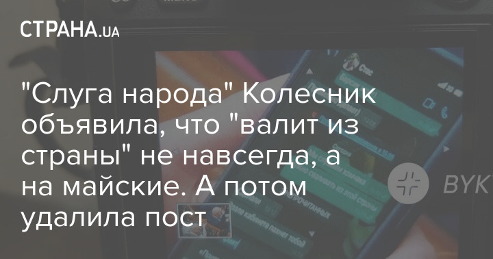 "Слуга народа" Колесник объявила, что "валит из страны" не навсегда, а на майские. А потом удалила пост