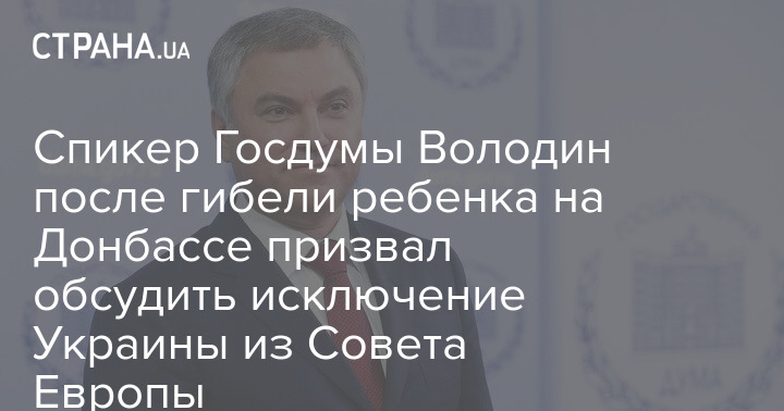Спикер Госдумы РФ Вячеслав Володин считает, что после гибели ребенка в Донецке, которая якобы произошла из-за беспилотника ВСУ, нужно обсудить вопрос об исключении Украины из Совета Европы.