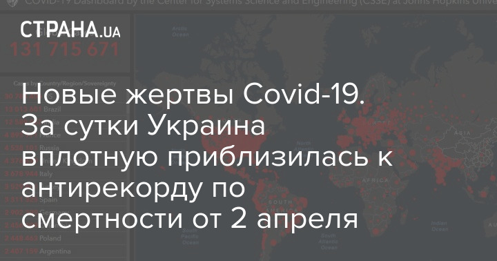 Новые жертвы Covid-19. За сутки Украина вплотную приблизилась к антирекорду по смертности от 2 апреля