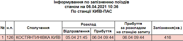 "Сейчас поезд задерживается в пути примерно на 6 часов. Железнодорожники прилагают максимум усилий, чтобы уменьшить его отставание от графика", – добавили в УЗ.